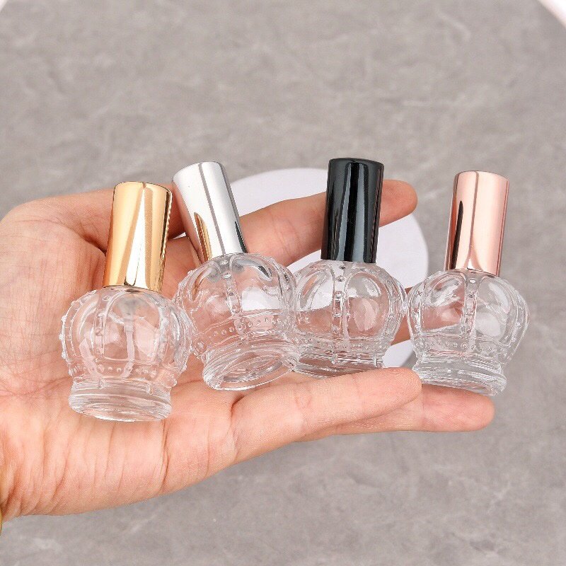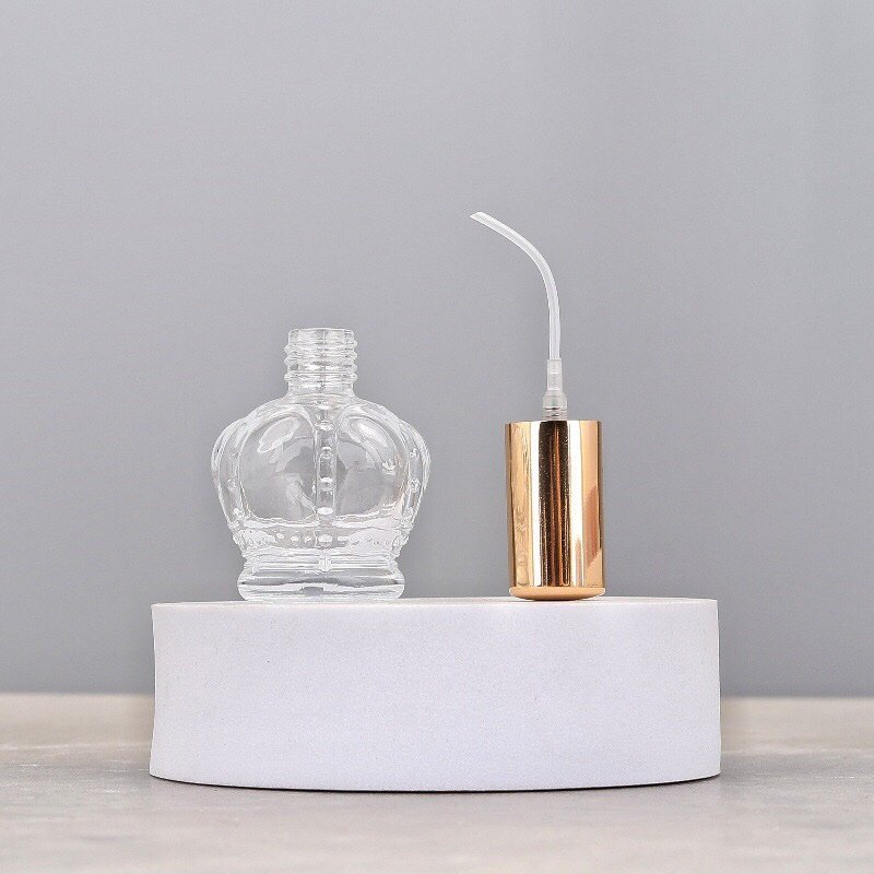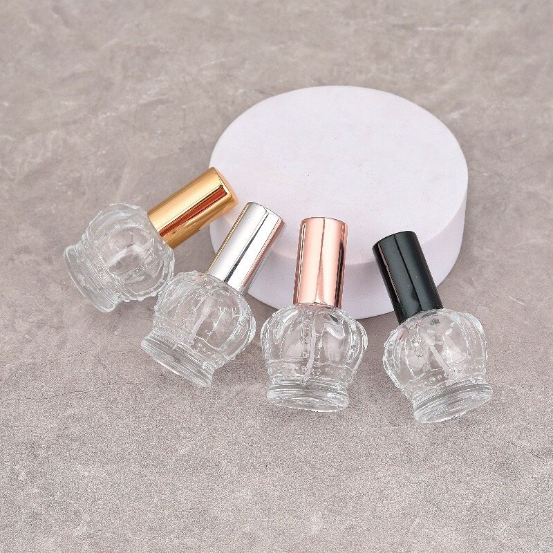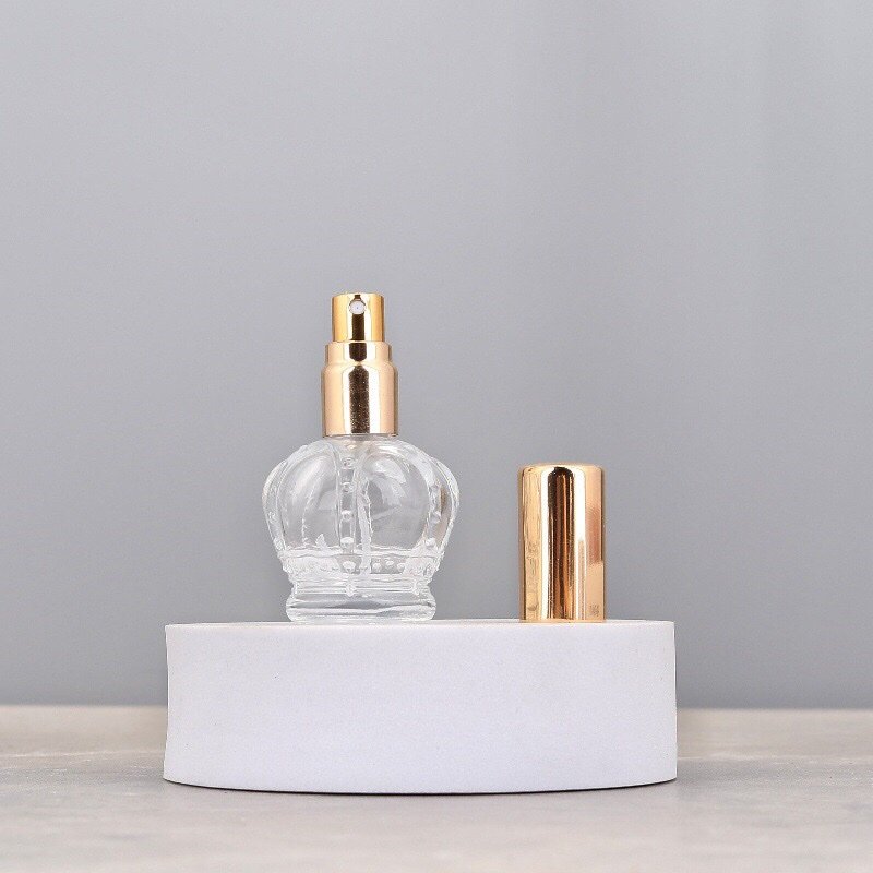 Introducing our distinctive Crown-Designed Perfume Spray Bottle, featuring an elegantly contoured glass body that resembles a royal crown. This unique 15ml bottle combines artistic design with practical functionality, with the glass itself molded into an exquisite crown shape. Choose from four sophisticated cap colors—Silver, Gold, Black, or Rose Gold—to complement this striking design. Perfect for brands seeking to make a statement with their packaging, this bottle turns every fragrance into a work of art.