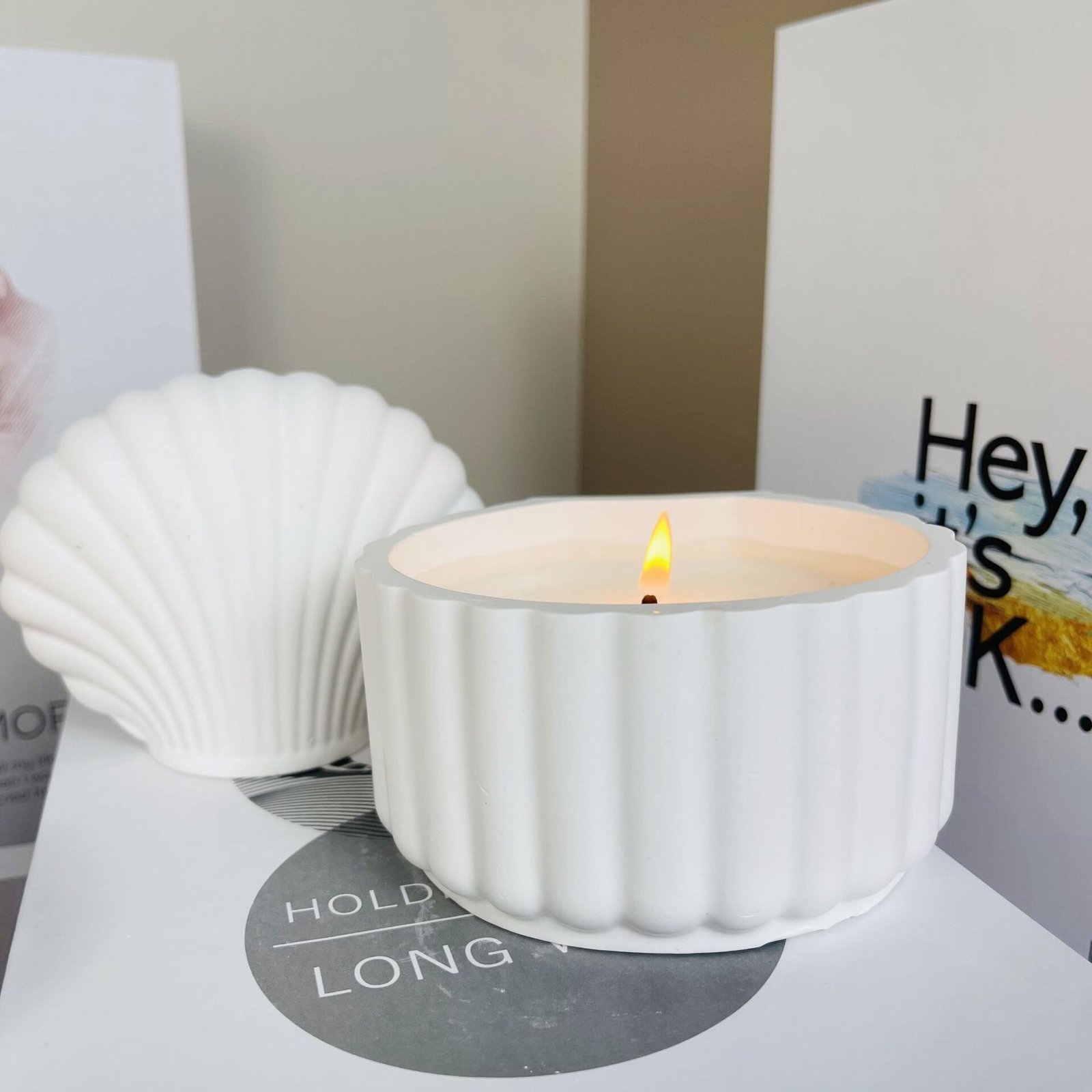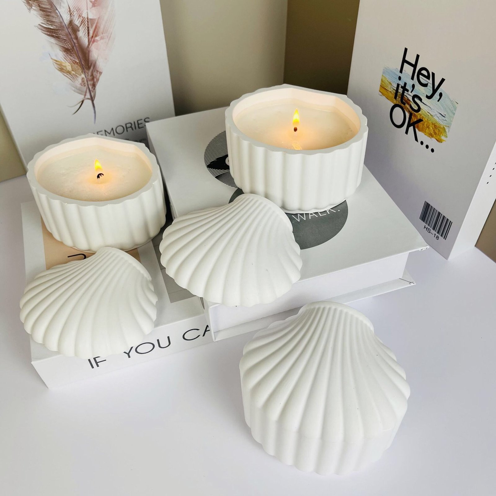Elevate your candle collection with our Scandinavian-inspired plaster candle cups featuring exquisite seashell design lids. Crafted from premium matte-finish plaster, these elegant containers combine minimalist aesthetics with natural elements, creating the perfect vessel for luxury soy candles and aromatic blends.