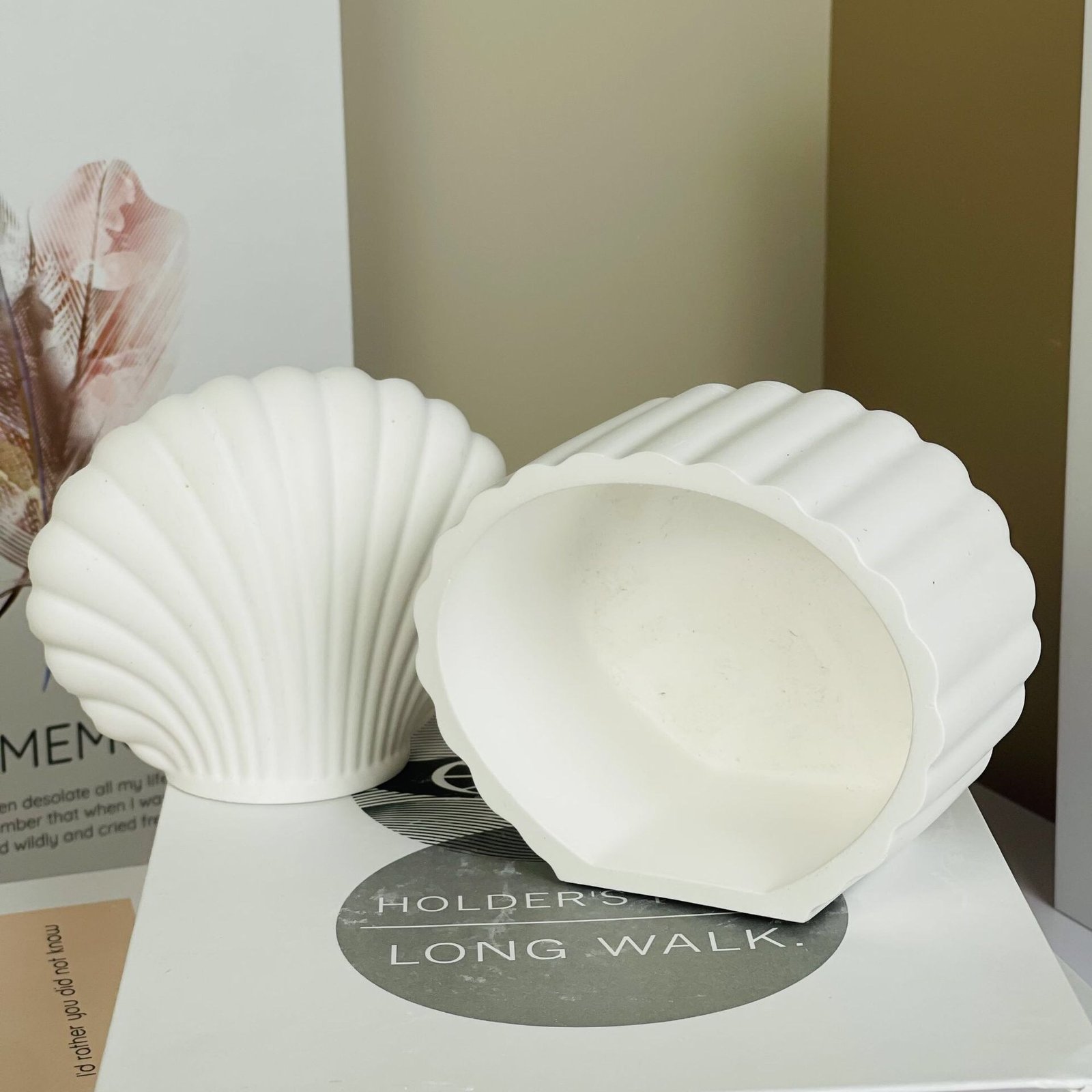 Scandinavian Plaster Candle Cup with Seashell Lid | Luxury Candle Container | Premium Home Decor
