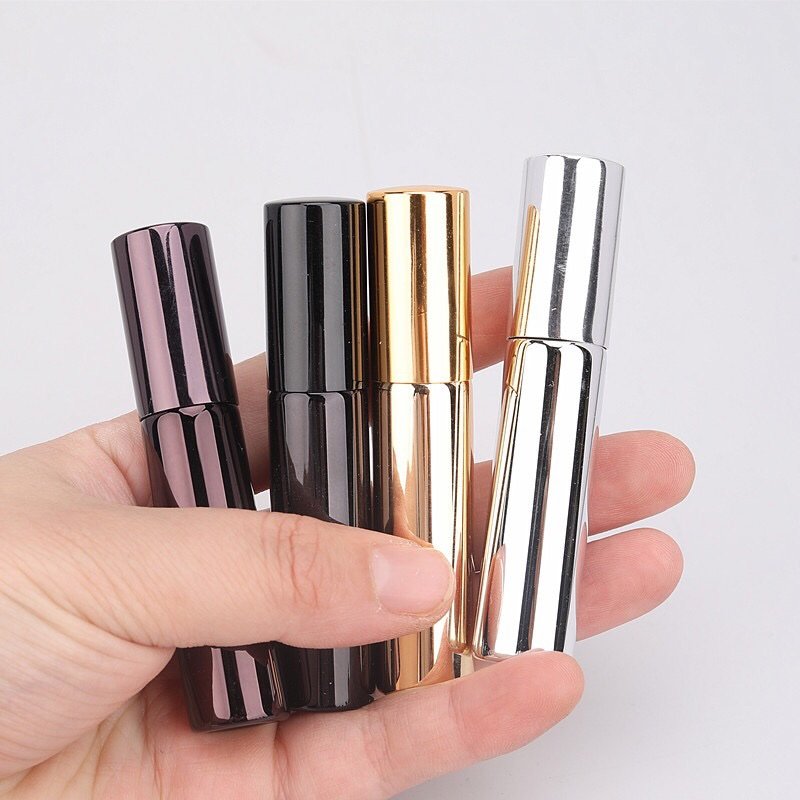 Discover the perfect blend of luxury and functionality with our Glass Perfume Bottles featuring premium aluminum spray caps. Available in four elegant metal finishes – Gold, Silver, Brown, and Black – these refillable atomizers offer both style and performance. The compact 5ml and 10ml sizes are ideal for travel, sample programs, or creating coordinated fragrance collections. Each bottle features a precise spray mechanism that delivers a consistent fine mist for optimal fragrance application.